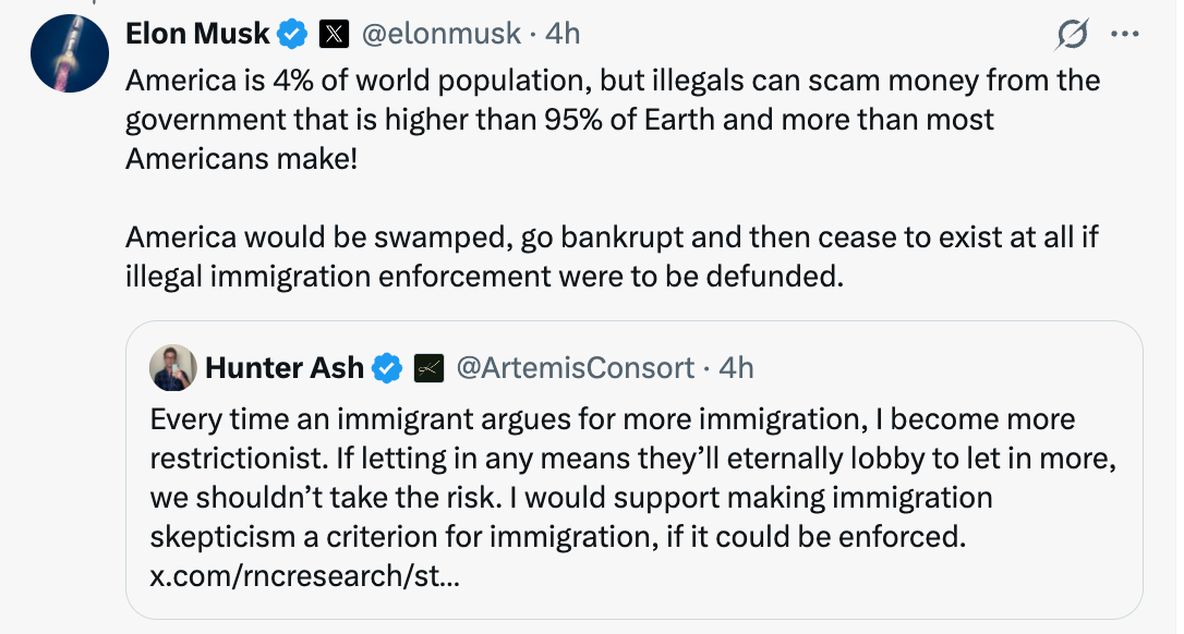 “America is 4% of world population, but illegals can scam money from the government that is higher than 95% of Earth and more than most Americans make! America would be swamped, go bankrupt and then cease to exist at all if illegal immigration enforcement were to be defunded.”